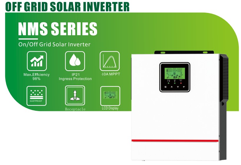 NMS-1000W jednofazni izvanmrežni solarni pretvarač prikladan je za područja bez napajanja, nomadsko područje, komunikacijsku baznu stanicu, područje nestabilnog napajanja, otoke, graničnu postaju, urede izvan strujne mreže, kioske s novinama, itd.
